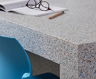 Sus atributos les permiten la libertad a diseñadores y arquitectos de crear a través de su imaginación ambientes confortables para vivir y disfrutar. Es una superficie sólida no porosa, de alta dureza y de fácil mantenimiento que simula la apariencia de una piedra natural.